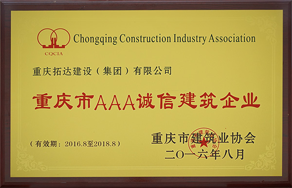 • 2016-2018年度重慶市AAA誠信建筑企業(yè)